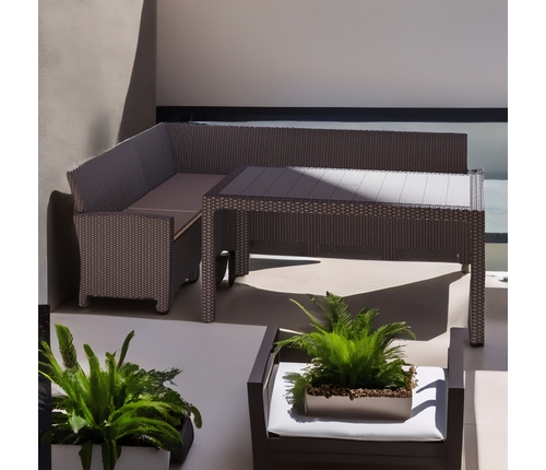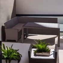 Дизайн пластика под ротанг придает мебели естественный вид и гармонично сочетается с любым ландшафтом.