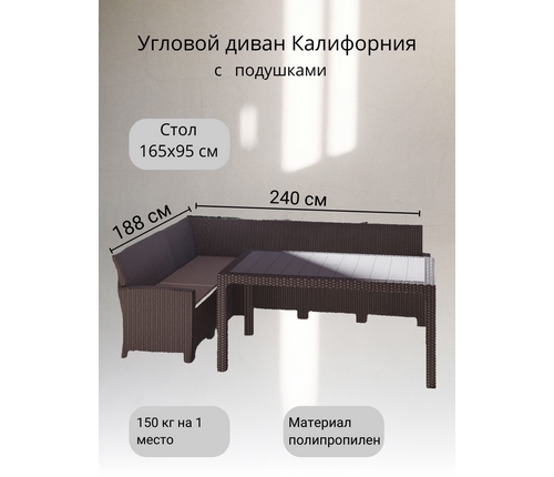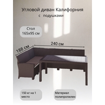 Комплект мебели под ротанг Калифорния (California) с угловым диваном 240х188 см с подушками на сиденье и столом 165х95 см.