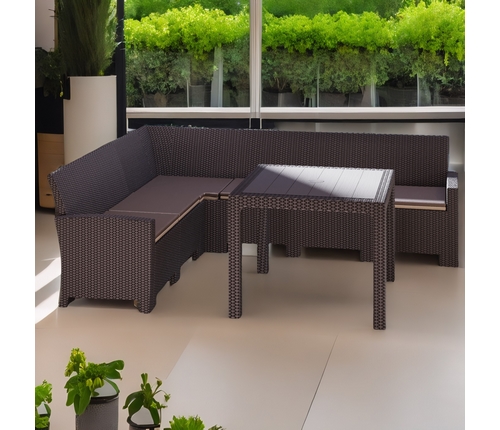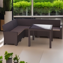 Дизайн пластика под ротанг придает мебели естественный вид и гармонично сочетается с любым ландшафтом.