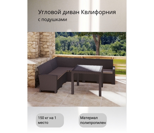 Комплект мебели под ротанг Калифорния (California) с угловым диваном 240х188 см с подушками на сиденье и столом 95х95 см.