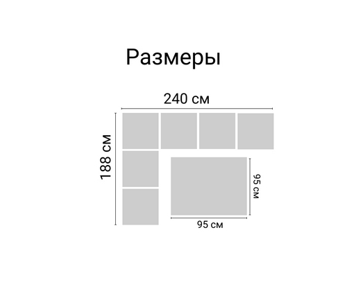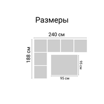 угловой диван: длина - 240, ширина - 188, высота - 74,