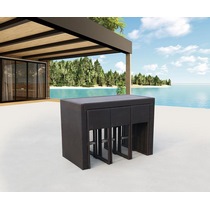 Столешница выполнена из высокотехнологичного материала (декинг), который не подвержен воздействию осадков, грибков и насекомых.