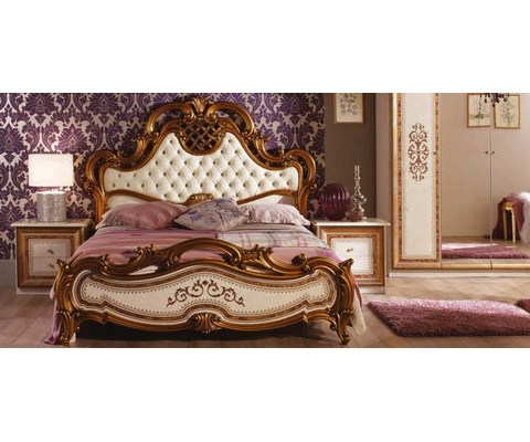 Изголовье кровати выполнено с использованием экокожи, отделка - кристаллы Swarovski.