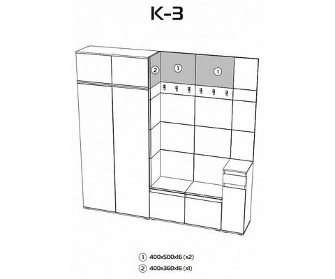 Компоненты, входящие в комплект: 1 панель настенная - 360х400х16 мм 2 панели настенные - 500х400х16 мм.