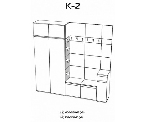 Компоненты, входящие в комплект: 1 панель настенная - 360х150х16 мм 3 панели настенные - 360х400х16 мм.