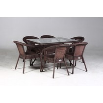 Комплект плетеной мебели Deco (Деко) 6 с прямоугольным столом, коричневый