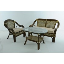 Комплект плетеной мебели для отдыха 01-15 (стол, 2 кресла, диван) из натурального ротанга, цвет: олива