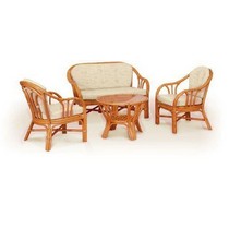 Комплект плетеной мебели для отдыха 01-28 (стол, 2 кресла, диван) из натурального ротанга, цвет: коньяк