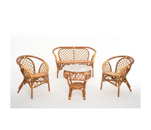 Комплект плетеной мебели для отдыха 01-92 из натурального ротанга, цвет: коньяк