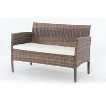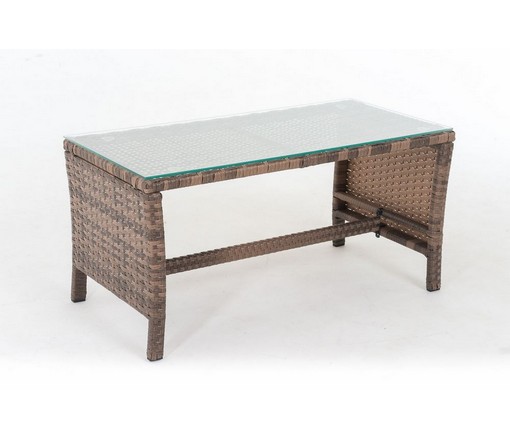 Материалы изделия: Каркас - сталь, плетение - искусственный ротанг (полипропилен), подушки - ткань полиэстер с поролоновым наполнителем, столешница - стекло.