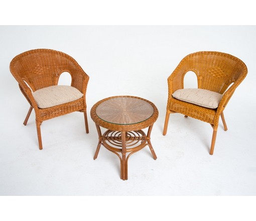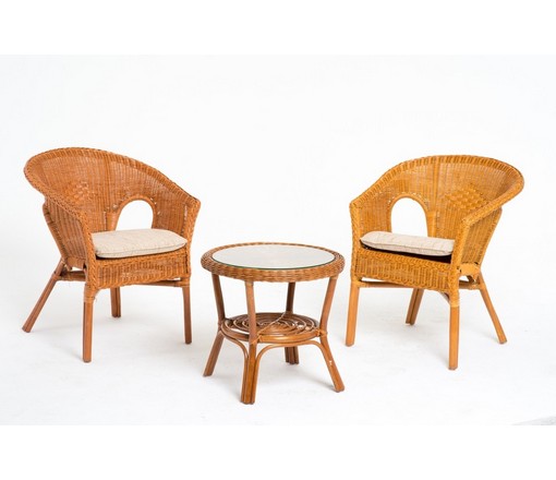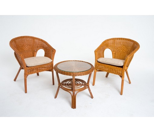 Комплект плетеной мебели для террасы 02-08 из натурального ротанга, цвет: коньяк