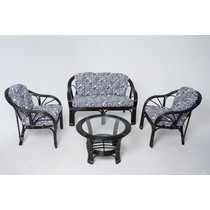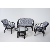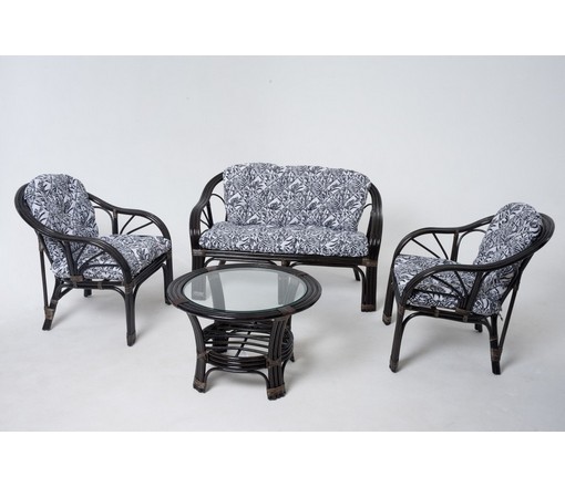 Комплект плетеный для отдыха 01-90 натуральный ротанг (темный коньяк / пальма черно-белая)