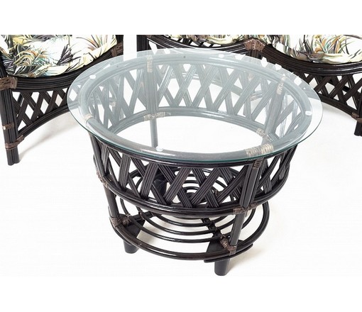 Материалы изделия: натуральный ротанг (каркас), стекло (столешница).