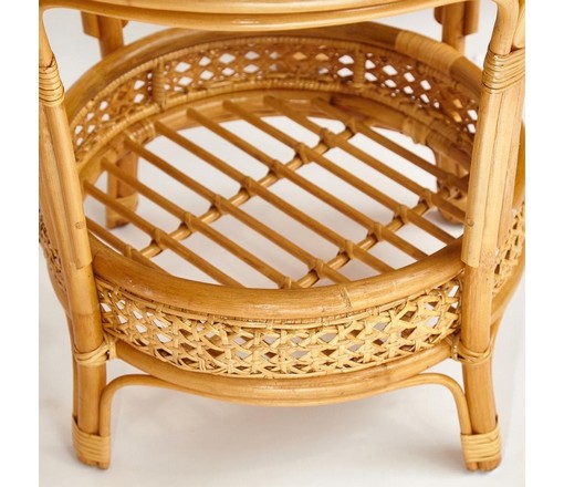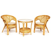 Комплект плетеный PELANGI ротанг плетеный стол со стеклом и 2 кресла (без подушек) Honey (мед)