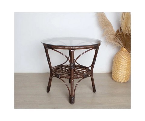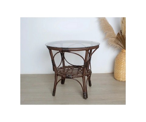 Материал изделия: каркас - металл с порошковым покрытием, плетение - искусственный ротанг, столешница - закаленное стекло.