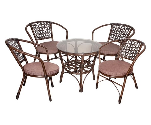 Комплект Анапа состоит из кофейного столика и четырех стульев с подушкой.