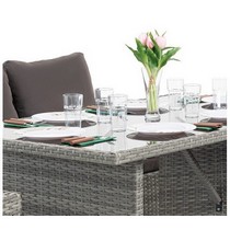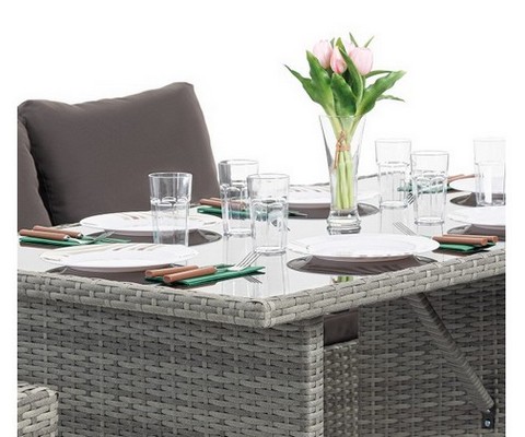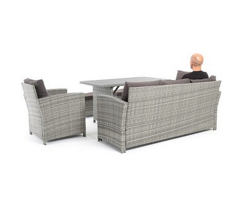 Мебель выполнена в современном дизайне и сочетает в себе долговечность, устойчивость к погодным условиям и эргономичность.
