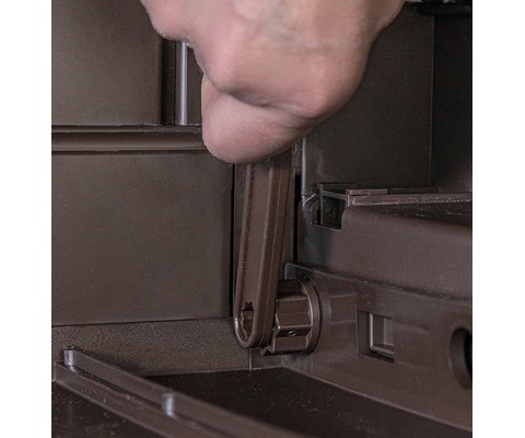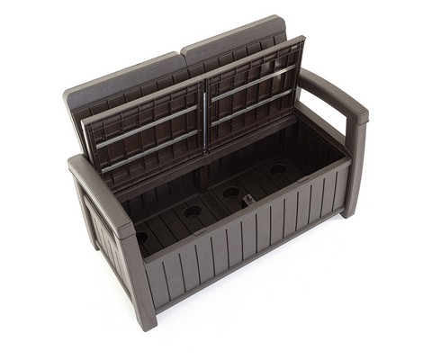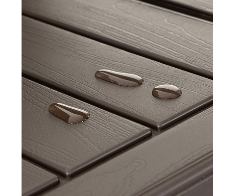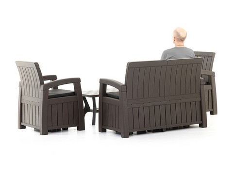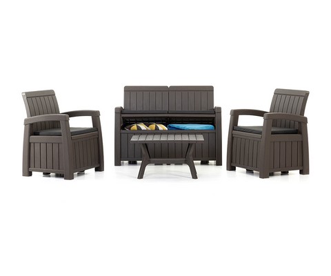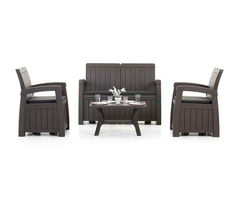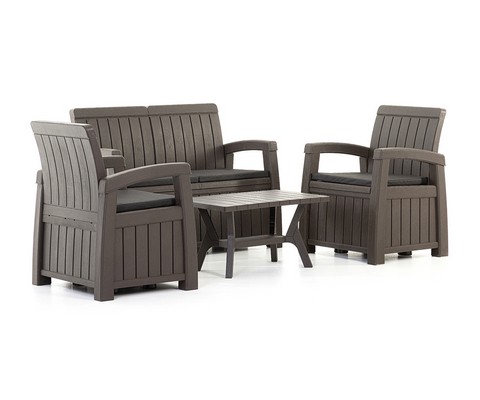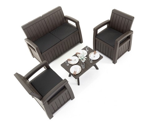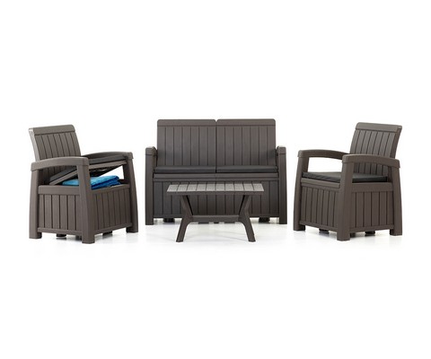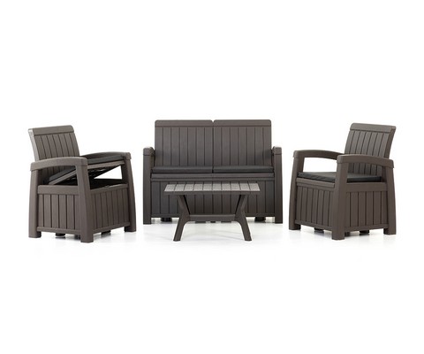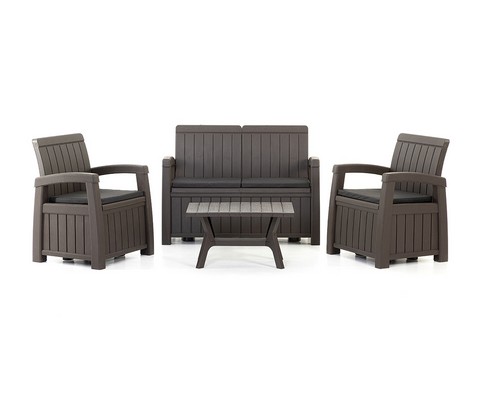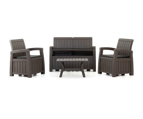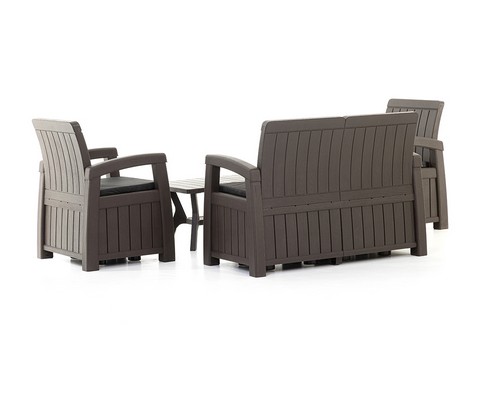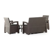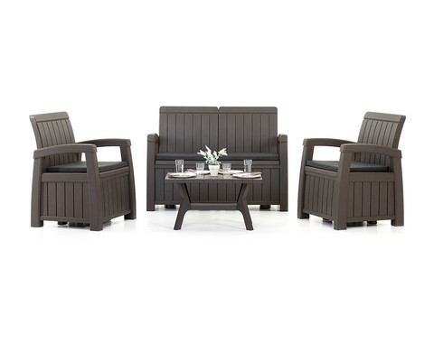 Мебель изготовлена из полипропилена с внешней имитацией дерева.