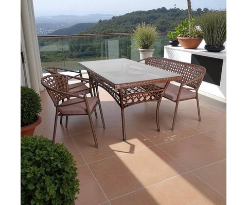 Комплект садовой мебели стол Адлер 1,4 м, диван и 2 стула Латте с подушкой (коричневый)