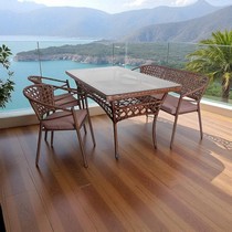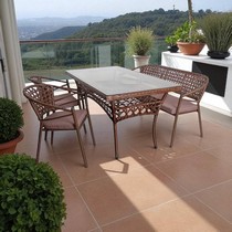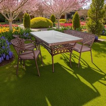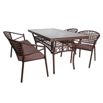 Искусная оплетка из искусственного ротанга придает комплекту изысканный вид.