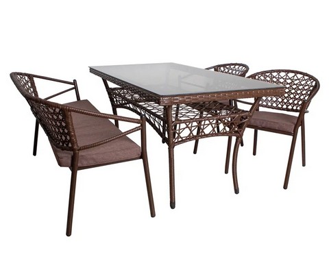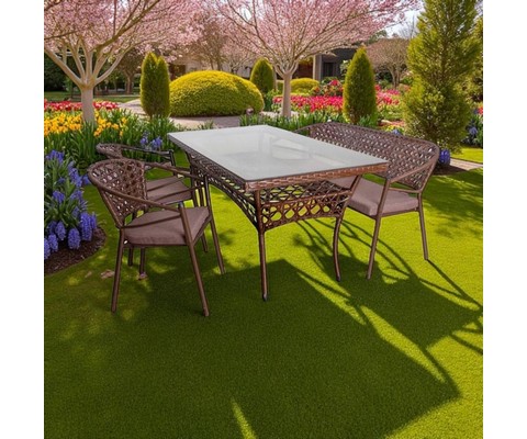 Комплект садовой мебели стол Адлер 1,4 м, диван и 2 стула Латте с подушкой (коричневый).