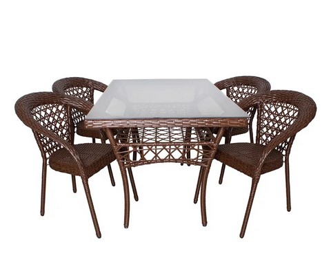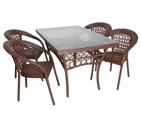 Комплект садовой мебели стол Адлер 1,4 м и 4 стула Мокко с ротангом (коричневый).