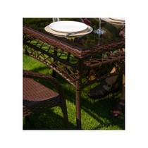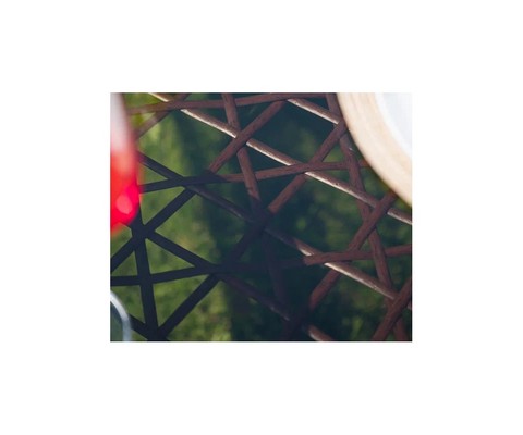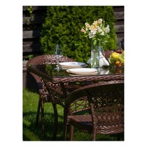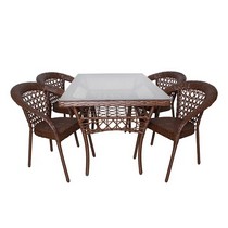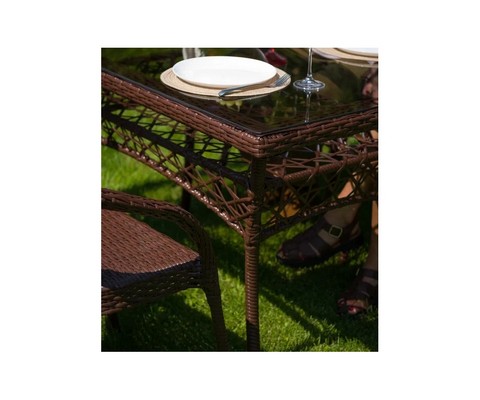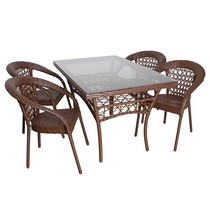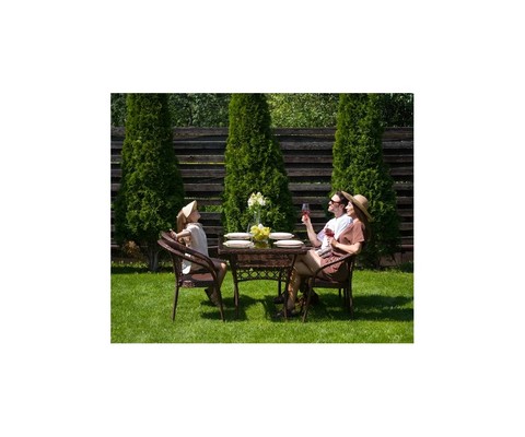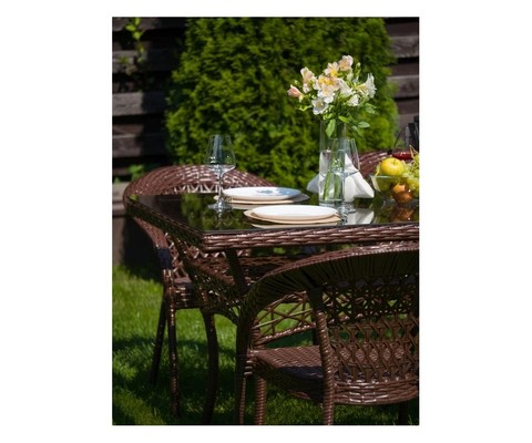 Искусная оплетка из искусственного ротанга придает комплекту изысканный вид.