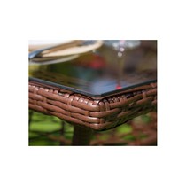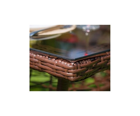 Материал изделия: каркас - металл с порошковым покрытием, плетение - искусственный ротанг, столешница - закаленное стекло.