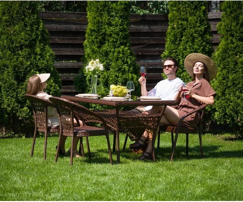 Идеально подходит для семейных обедов и встреч с друзьями на террасе или в саду.