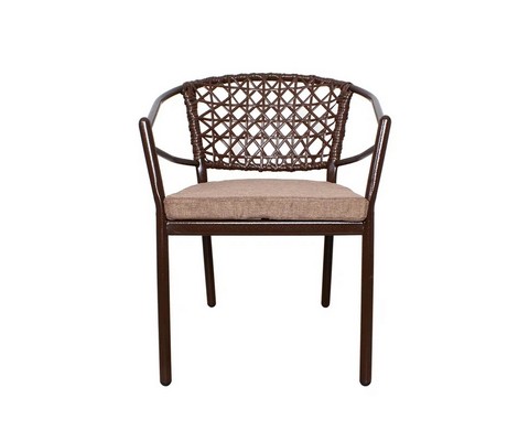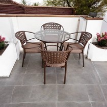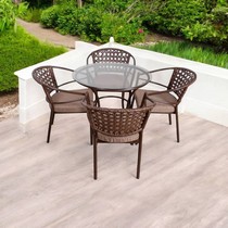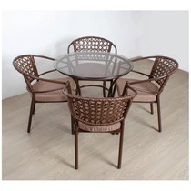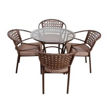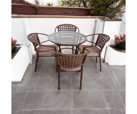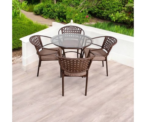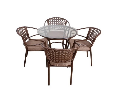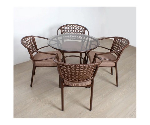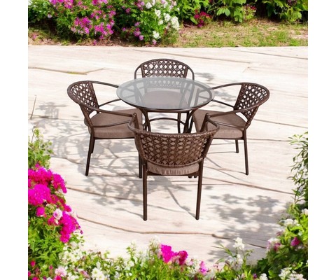 Комплект садовой мебели с круглым столом Ялта и четырьмя стульями Латте с подушкой подходит для использования на открытых верандах и террасах.