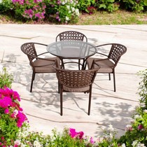 Материал изделия: каркас - металл с порошковым покрытием, плетение - искусственный ротанг, столешница - закаленное стекло.