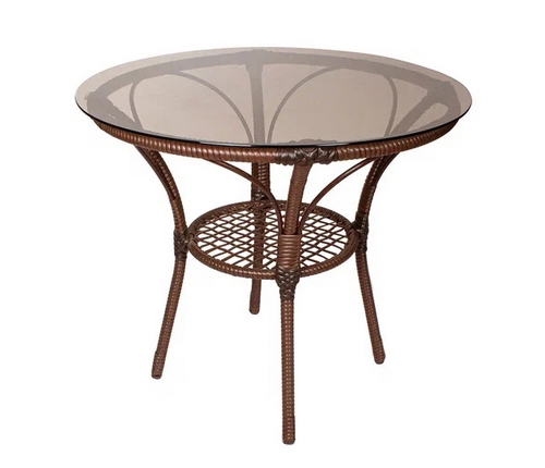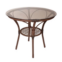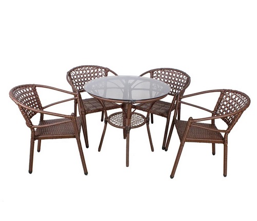 Материал: каркас - металл с порошковым покрытием, плетение - искусственный ротанг, столешница - закаленное стекло.