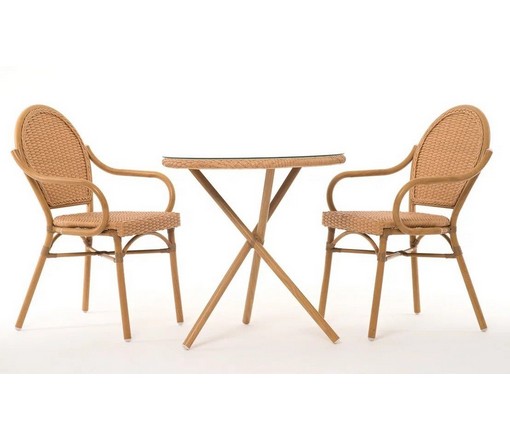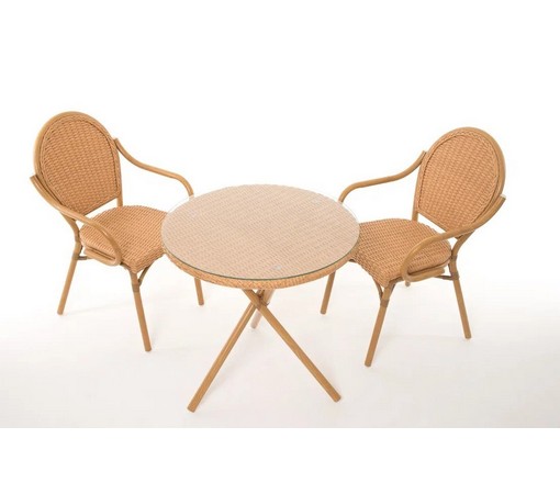 Комплект: стол + 2 кресла CS-03-01-01 из техноротанга на железном каркасе подойдет для лоджии, беседки, террасы или летнего кафе.