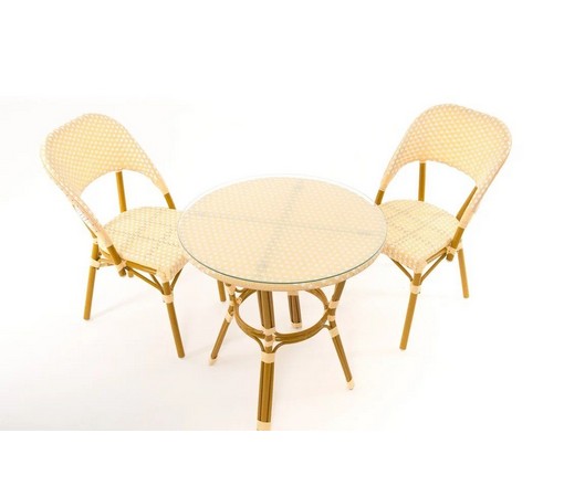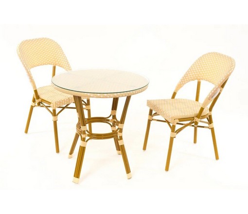 Комплект: стол и 2 кресла CS-02 -01-02 из техноротанга на железном каркасе подойдет для лоджии, беседки, террасы или летнего кафе.