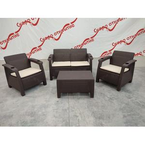 Комплектация: 2 кресла, столик журнальный, двухместный диван, подушки (бежевый, коричневый)