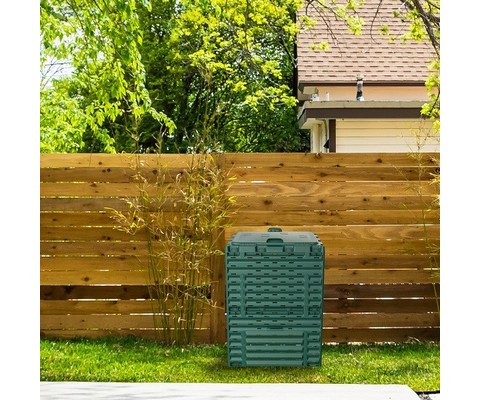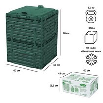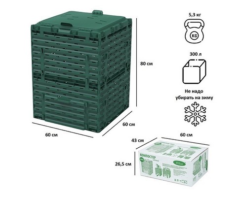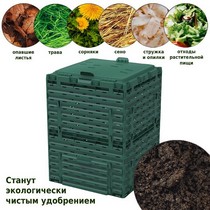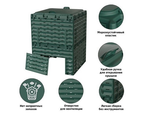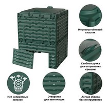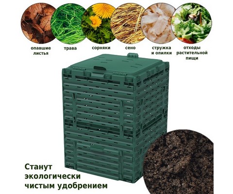 Компостер Piteco с крышкой 300 л зелёный предназначен для переработки растительных и пищевых отходов в экологически чистый перегной.