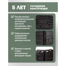 Рельефные панели и ребра жесткости по всей конструкции обеспечивают высокую прочность и устойчивость к нагрузкам от грунта и компостной массы.