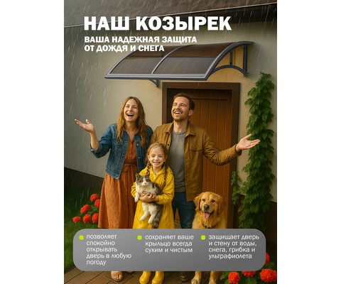 Надежный и стильный козырек из поликарбоната для защиты входной двери, крыльца и порога от дождя, снега и солнечных лучей.
