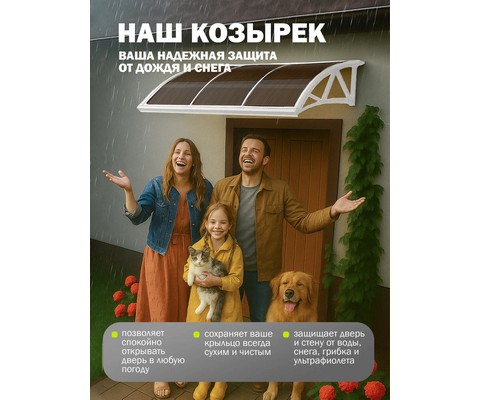 Надежный и стильный козырек из поликарбоната для защиты входной двери, крыльца и порога от дождя, снега и солнечных лучей.