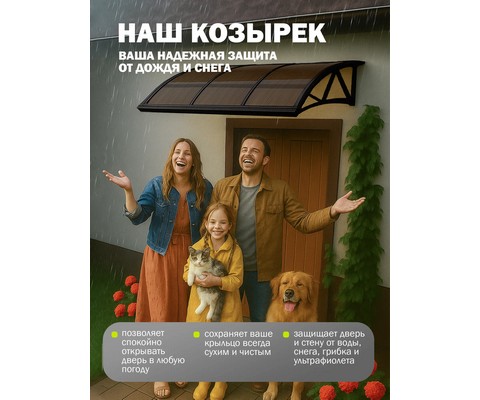 Надежный и стильный козырек из поликарбоната для защиты входной двери, крыльца и порога от дождя, снега и солнечных лучей.