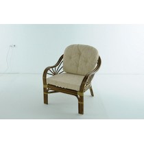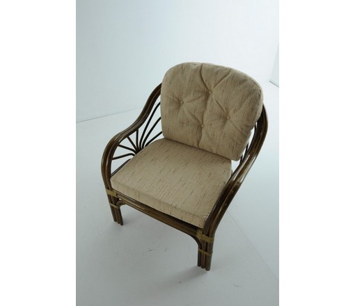 Каркас - натуральный ротанг, подушка - ткань рогожка с мягким наполнителем.