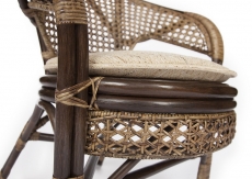 Каркас - натуральный ротанг, подушка - ткань рогожка с мягким наполнителем.