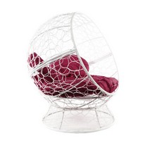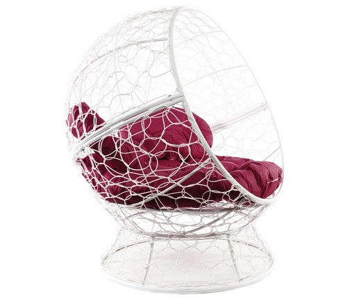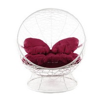 Кресло Апельсин с ротангом (белое, бордовая подушка)