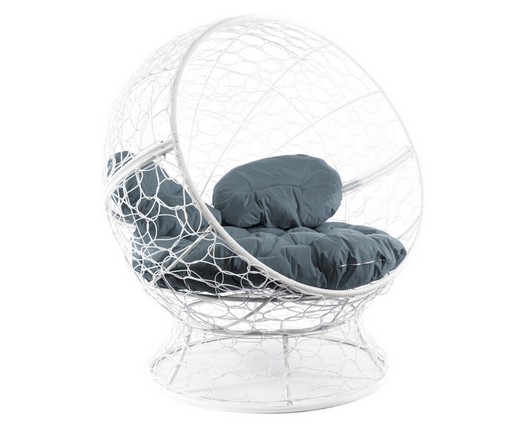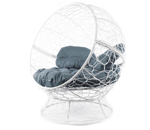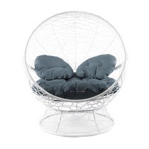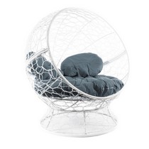 Кресло Апельсин с ротангом (белое, серая подушка)