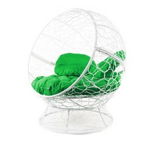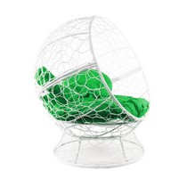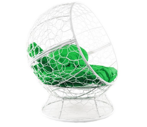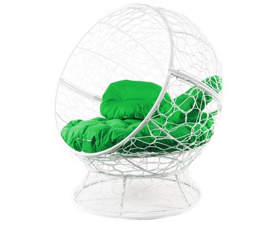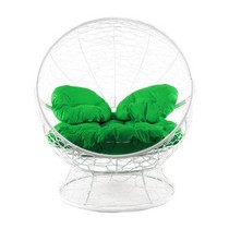 Кресло Апельсин с ротангом (белое, зелёная подушка)