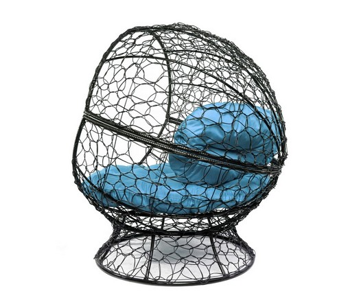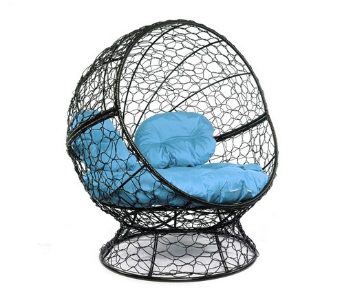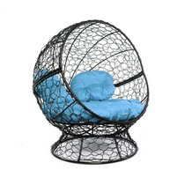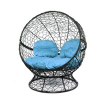 Кресло Апельсин с ротангом (черное, голубая подушка)