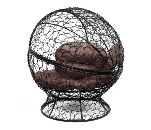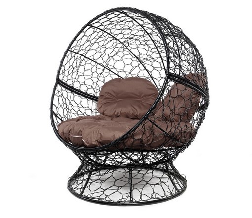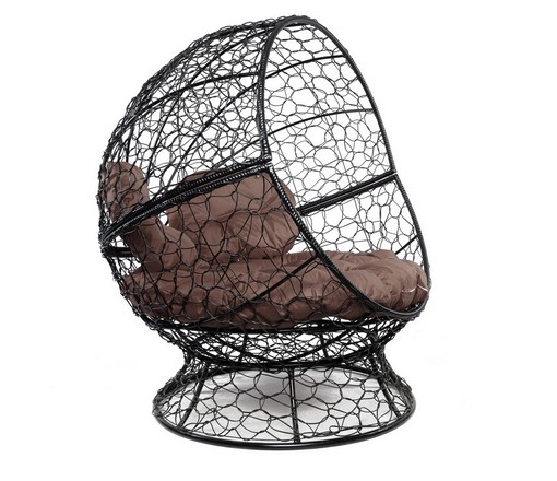 Кресло Апельсин с ротангом (черное, коричневая подушка)