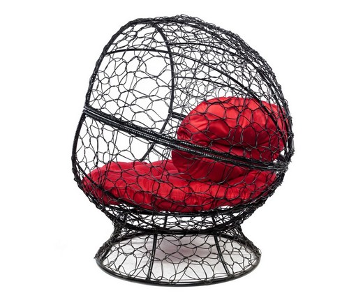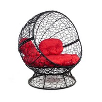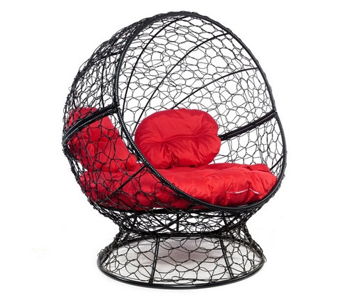 Кресло Апельсин с ротангом (черное, красная подушка)