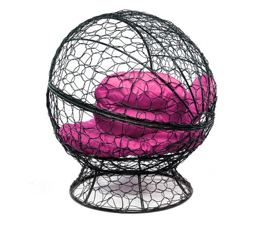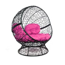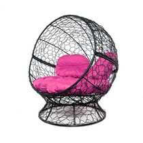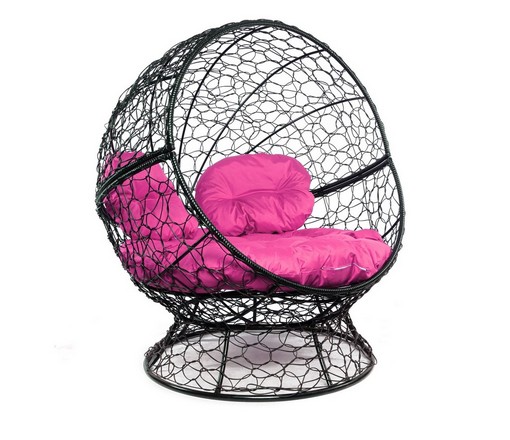 Кресло Апельсин с ротангом (черное, розовая подушка)