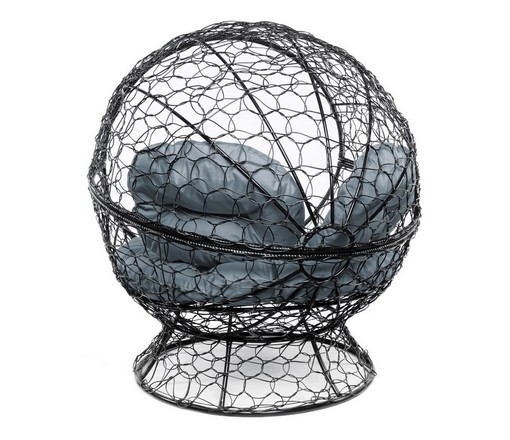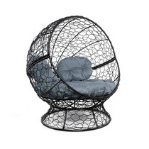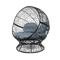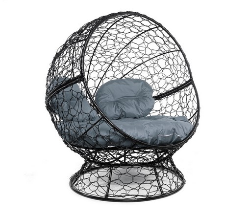Кресло Апельсин с ротангом (черное, серая подушка)